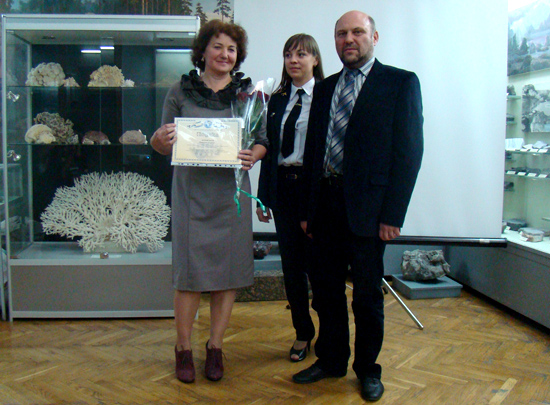 Завідувач відділу «Геологічний музей» ННПМ НАН України Катерина Ігорівна Деревська нагороджена відзнакою НАУ «Подяка ректора» за плідну співпрацю з Національним авіаційним університетом та сприяння у науковій і практичній підготовці висококваліфікованих спеціалістів у галузі геодезії, картографії та землеустрою.
