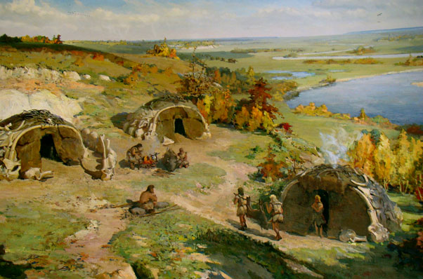 | Більшість стоянок на території України були знайдені випадково під час будівництва. Так була знайдена і Мезинська стоянка. У 1907 р. під час риття погребу на Чернігівщині у садибі Сисоя Кошеля були знайдені великі кістки мамонта. У тому ж році місцезнаходження було оглянуто П. Добровольським – представником комітету з організації XIV Археологічного з`їзду, що мав відбутися у Чернігові. А у 1908 р. почалося фахове археологічне вивчення Мезинської стоянки. Стоянка розкопувалась і вивчалась багатьма відомими українськими істориками та археологами: Ф.К. Вовком, Л.Є. Чикаленком, М.Я. Рудинським, В. Є. Куриленком та ін. Найвідомішим дослідником Мезинської стоянки став археолог Іван Гаврилович Шовкопляс, який протягом семи років (1954-1961) досліджував знахідки. Підсумком тривалих досліджень прадавньої культури стала його монографія "Мезинская стоянка". - Киев : Наук. думка, 1965. Згідно І.Г. Шовкопляса, на стоянці за всі роки досліджень було виявлено п`ять господарсько-побутових комплексів (1965). Згідно реконструкції В.Я. Сергіна, таких комплексів – два (1987). Господарсько-побутові комплекси являли собою складну структуру, яка включала житло з кісток мамонта, господарські ями, вогнища та місця інтенсивної господарської діяльності, де була сконцентрована значна кількість крем`яних та фауністичних решток. Самі житла представляли собою великі скупчення кісток насамперед мамонта, більшість з яких (черепи, тазові кістки, лопатки та щелепи) були елементами їх конструкцій. Дослідження стоянки дали величезний фауністичний матеріал. Найбільш широко, кістками особин усіх вікових категорій та всіма кістками скелету, представлений мамонт. Окрім кісток мамонта на стоянці знайдені кістки коня, північного оленя, вівцебика, носорога, зубра, песця, вовка. В меншій кількості присутні кістки ведмедя, росомахи, зайця та інших тварин. Кам`яний комплекс Мезина за усі роки розкопок налічує більше 100 тис. одиниць. Дана колекція є однією з найбільших серед пам`яток Середнього Подесення. Великий інтерес представляють знайдені на стоянці вироби з оброблених кісток. Значну частину цих виробів з бивня, рогу, та кістки складають проколки, голки, наконечники дротиків, підвіски, „гудзики” та їх напівфабрикати. Найбільшу славу Мезинській стоянці принесли вироби мистецтва та прикраси. Широко відомою є серія стилізованих антропоморфних статуеток, прикрашених геометричним орнаментом. Унікальними є мезинські браслети, прикрашені ялинковим та меандровим орнаментами. З Мезинської стоянки походить набір мамонтових кісток, зокрема череп, лопатки, щелепи, довга кістка та інші, прикрашені зигзагоподібними та паралельними смугами, нанесеними червоною вохрою. С.М. Бібіков інтерпретував дані речі, як найдавніший музичний комплекс (Бібиков, 1981, 107с.). У Палеонтологічному музеї ННПМ НАН України представлений макет-реконструкція житла з Мезину, а музичний комплекс та ряд визначних виробів мистецтва експонується в Археологічному музеї НАН України.  Дослідження в Мезині виявили надзвичайно цікаву, яскраву пам`ятку. Результати вивчення Мезинської стоянки неодноразово висвітлювалися на міжнародних, всеукраїнських та регіональних конгресах і конференціях. На сьогодні особливостям виявленого матеріалу, різним питанням функціонування стоянки присвячена величезна кількість спеціал